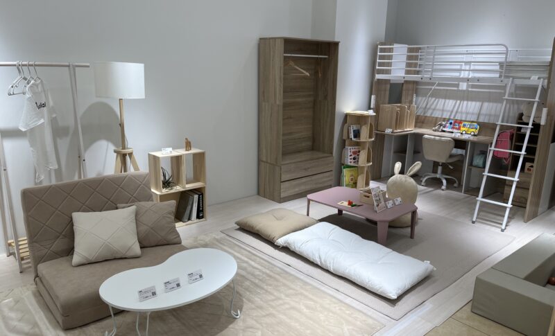 開放的なファサードを一歩入れば、そこは暮らしのインスピレーションの宝庫。「Quality of Life」をテーマに、ウォールナット調のシックなリビングから、大人可愛いこたつ空間、機能美あふれるベッドルームまで、多彩なライフスタイルを提案しています。
